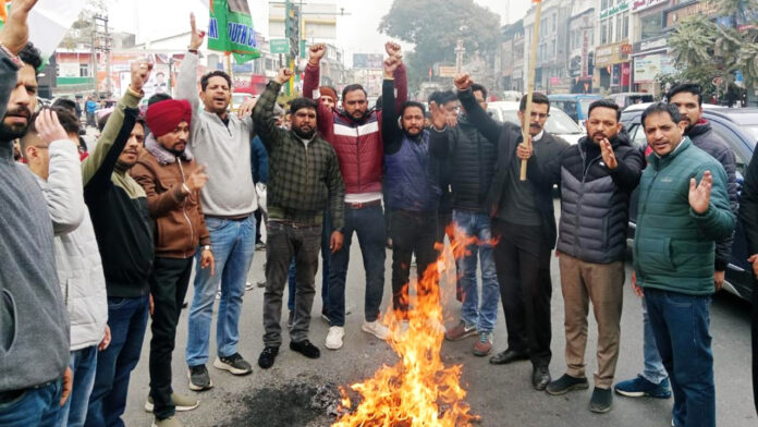 चण्डीगढ नगर निगम चुनाव की घटना पर भाजपा सरकार का पुतला दहन किया