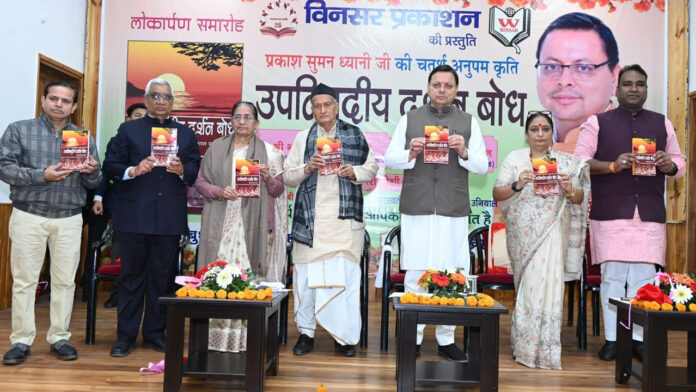 देहरादून। मुख्यमंत्री पुष्कर सिंह धामी ने बुधवार को मुख्यमंत्री कैम्प कार्यालय स्थित मुख्य सेवक सदन में प्रकाश सुमन ध्यानी द्वारा लिखित पुस्तक ‘उपनिषदीय दर्शन बोध’ का विमोचन किया। पुस्तक विमोचन के अवसर पर विधानसभा अध्यक्ष ऋतु खण्डूरी भूषण एवं महाराष्ट्र के पूर्व राज्यपाल और उत्तराखण्ड के पूर्व मुख्यमंत्री भगत सिंह कोश्यारी उपस्थित थे।