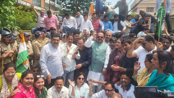 - प्रदेशभर में कांग्रेसियों ने किया प्रदर्शन, कांग्रेसियों की पुलिस से हुई धक्का-मुक्की