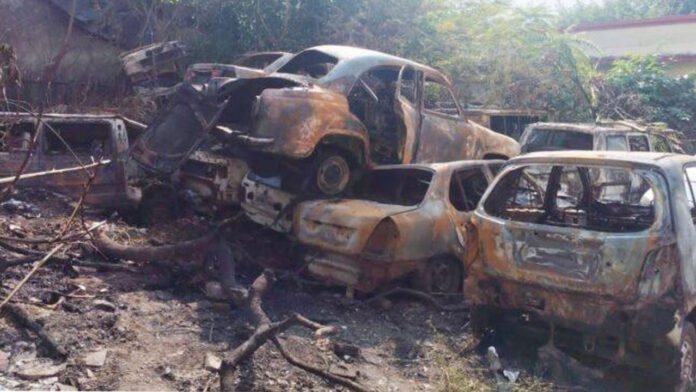 दीपावली की रात कोतवाली में खड़ी आठ कारों में लगी आग