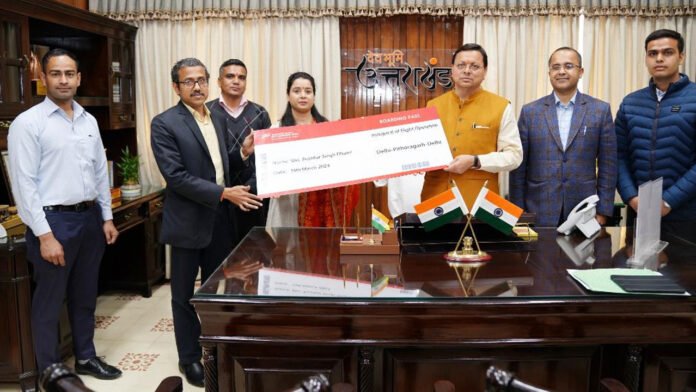 देहरादून। मुख्यमंत्री पुष्कर सिंह धामी ने गुरुवार को  कैम्प कार्यालय, देहरादून में दिल्ली से पिथौरागढ़ हेतु प्रारम्भ हो रही एलायंस एयर की हवाई सेवा का औपचारिक शुभारम्भ किया। मुख्यमंत्री ने कहा कि लंबे समय से चली आ रही मांग को पूरा करते हुए आज औपचारिक रूप से विमान सेवा का शुभारंभ कर दिया गया है।