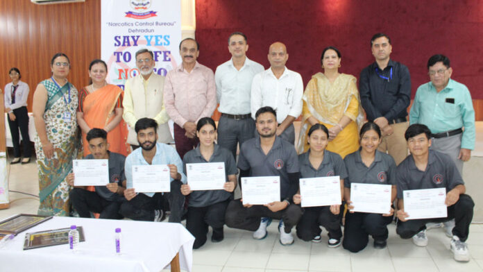 देहरादून। सांई ग्रुप ऑफ इंस्टीट्यूशन्स ने नारकोटिक्स विभाग के साथ मिल कर नशे से आज़ादी पखवाड़ा मनाया। इस अभियान के अंतर्गत पोस्टर प्रतियोगिता, क्विज प्रतियोगिता, नुक्कड़ नाटक आदि जागरूकता कार्यक्रमों का आयोजन किया गया, जिसमें छात्रों ने उत्साहपूर्वक भाग लिया।