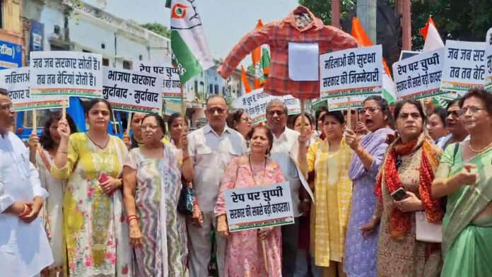 नाबालिग गैंगरेप प्रकरण : महिला कांग्रेस ने फूंका भाजपा का पुतला