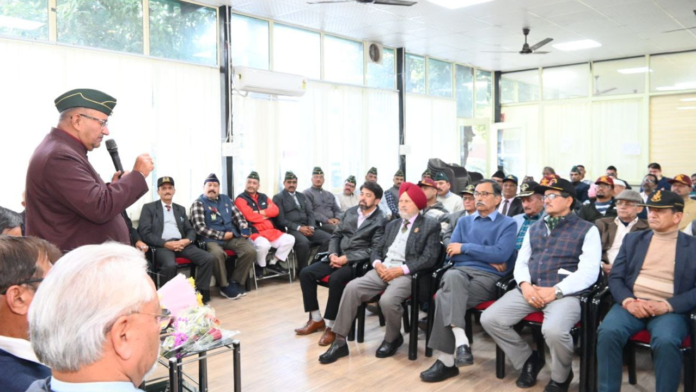 देहरादून। सैनिक कल्याण मंत्री गणेश जोशी ने कैंप कार्यालय में पूर्व सैनिकों के साथ नववर्ष और वेटरन डे के उपलक्ष्य में संवाद कार्यक्रम का आयोजन किया। इस अवसर पर पूर्व सैनिकों द्वारा सैनिक कल्याण मंत्री को सम्मानित भी किया गया। सैनिक कल्याण मंत्री ने पूर्व सैनिकों से संवाद स्थापित कर उनके कल्याण से जुड़े विभिन्न विषयों पर चर्चा की।