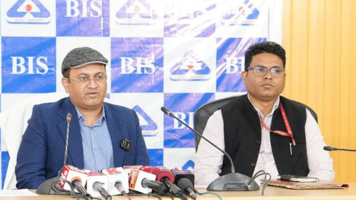 पत्रकार वार्ता के दौरान भारतीय मानक ब्यूरो के निदेशक सौरभ तिवारी।