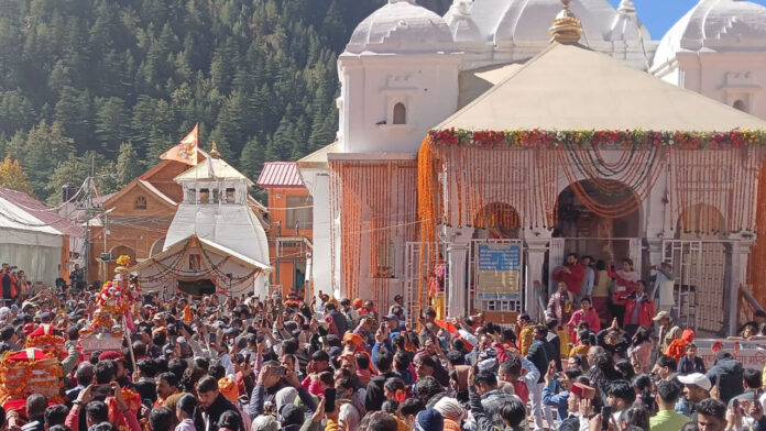 देहरादून। विश्व प्रसिद्ध गंगोत्री धाम के कपाट विधि-विधान के साथ शीतकाल के लिए दोपहर 12ः14 बजे बंद कर दिए गए हैं। कपाट बंद होने के बाद मां गंगा अपने मायके मुखबा में श्रद्धालुओं को दर्शन देंगी। सेना के बैंड एवं पारंपरिक वाद्य यंत्रों की स्वरलहरियों तथा गंगा मैया की जय के उद्घोष के साथ गंगा जी डोली यात्रा के साथ अपने शीतकालीन प्रवास मुखबा (मुखीमठ) के लिए रवाना हुईं।