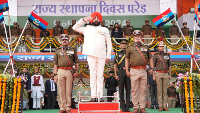 देहरादून। उत्तराखण्ड राज्य स्थापना दिवस के अवसर पर शनिवार को पुलिस लाईन, देहरादून में आयोजित मुख्य कार्यक्रम में राज्यपाल लेफ्टिनेंट जनरल गुरमीत सिंह (से नि) एवं मुख्यमंत्री पुष्कर सिंह धामी ने प्रतिभाग किया। इस अवसर पर राज्यपाल ने रैतिक परेड का निरीक्षण कर सलामी ली। राज्यपाल ने विशिष्ट सेवाओं के लिए ‘राष्ट्रपति पुलिस पदक’ एवं ‘पुलिस पदक’ प्राप्त पुलिस अधिकारियों को सम्मानित भी किया।