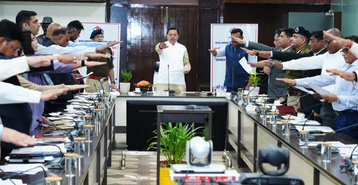 सचिवालय में ‘‘सतर्कता-हमारी साझा जिम्मेदारी’’ थीम पर आधारित जन जागरूकता कार्यक्रम का शुभारंभ कर उपस्थित अधिकारियों को सत्यनिष्ठा की प्रतिज्ञा दिलाई। यह जन जागरूकता कार्यक्रम प्रदेशभर में राज्य स्थापना दिवस 09 नवम्बर 2025 तक चलाया जाएगा।